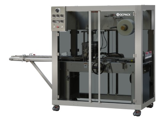 本機(jī)適用于各行業(yè)中的單件盒式物品的薄膜自動(dòng)包裝(帶金拉線)。本機(jī)整體機(jī)架采用碳鋼噴塑、落地多開安全門結(jié)構(gòu),采用平推式推盒結(jié)構(gòu),更換模具簡(jiǎn)單,調(diào)節(jié)距離多處采用手搖式調(diào)節(jié)尺寸,大大節(jié)省換模具時(shí)間,固定膜處采用氣漲軸輥固定,使換膜更簡(jiǎn)單、快速。